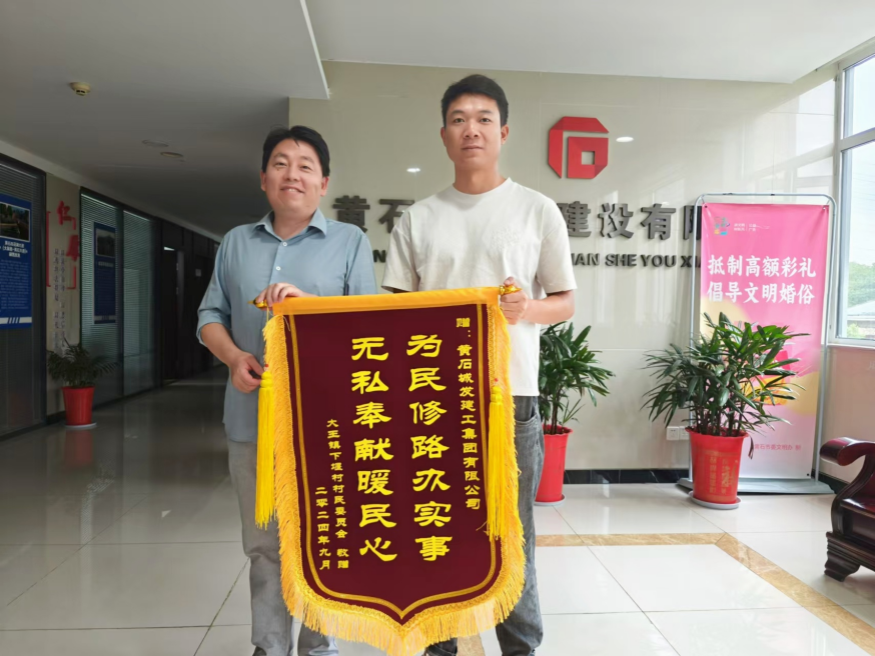 9月12日上午,黃石市開(kāi)發(fā)區(qū)·鐵山區(qū)大王鎮(zhèn)下堰村委代表將一面寫(xiě)有“為民修路辦實(shí)事 無(wú)私奉獻(xiàn)暖民心”的錦旗送到城發(fā)建工集團(tuán),對(duì)城發(fā)建工集團(tuán)在精準(zhǔn)服務(wù)居民所需、積極解決居民急難愁盼的工作表示衷心感謝。
