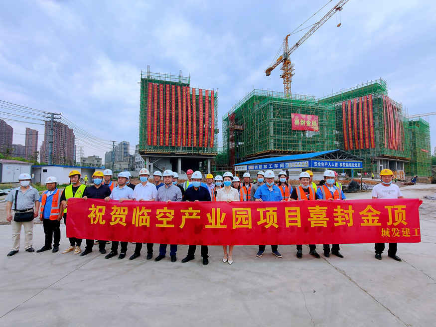 黃石臨空商務(wù)產(chǎn)業(yè)園獨棟企業(yè)總部項目部分樓棟喜封金頂
