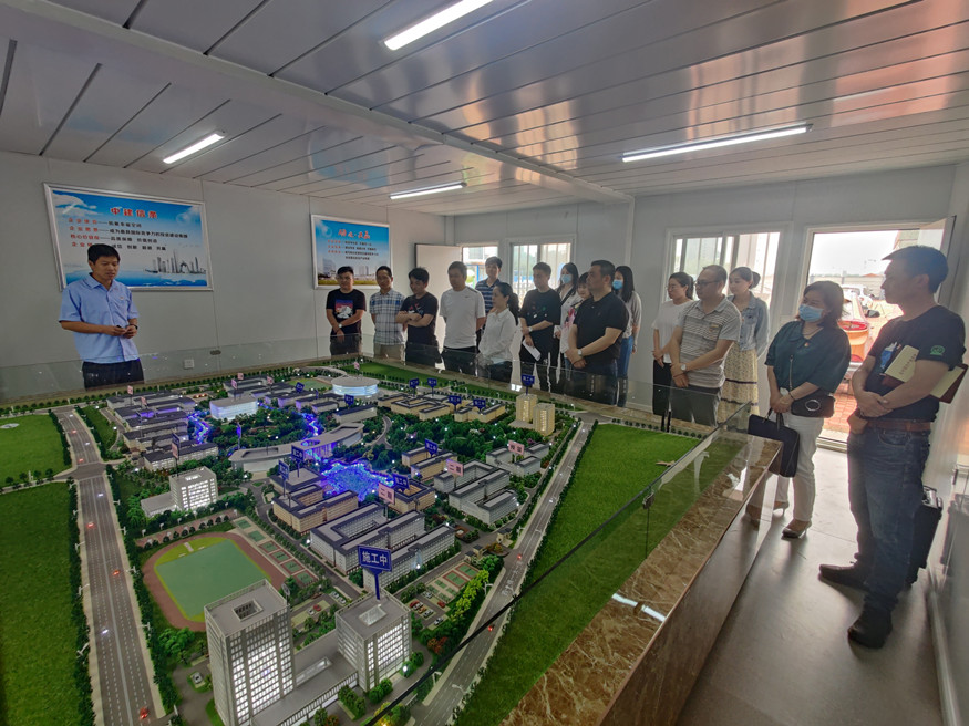 活動(dòng)前,建設(shè)公司一行在中建七局湖北工程職院新校區(qū)項(xiàng)目黨支部書(shū)記李曉龍的帶領(lǐng)下觀(guān)摩了項(xiàng)目沙盤(pán)室,詳細(xì)了解了湖北工程職院新校區(qū)項(xiàng)目進(jìn)展情況。